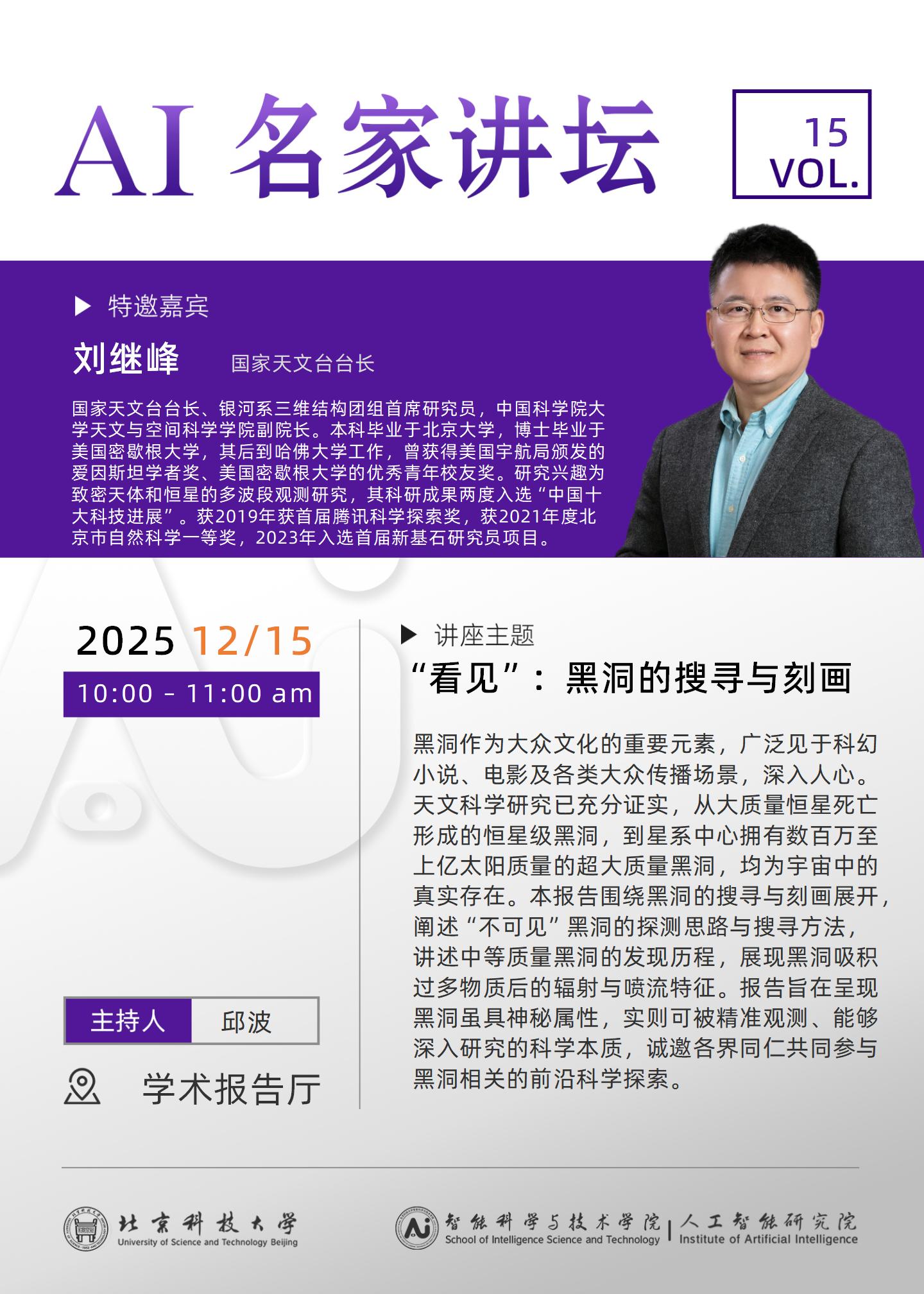 AI名家讲坛(Vol.15):“看见”:黑洞的搜寻与刻画