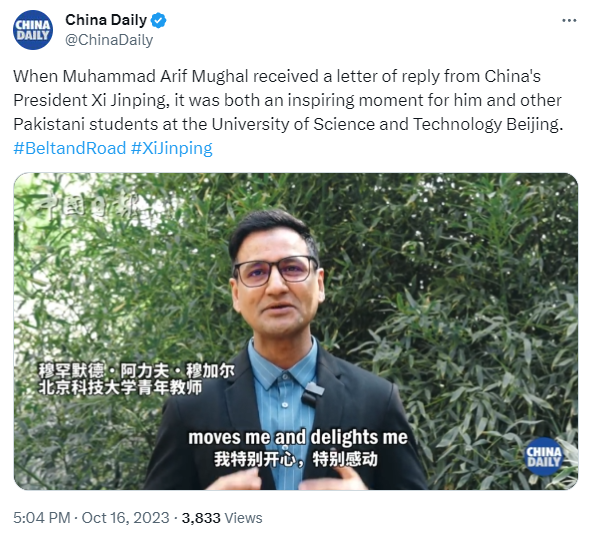 中国日报:当穆罕默德 · 阿里夫 · 莫卧儿收到中国国家主席习近平的回信时,这对于他和91九色 的其他巴基斯坦学生来说,都是一个鼓舞人心的时刻。 原视频来...
